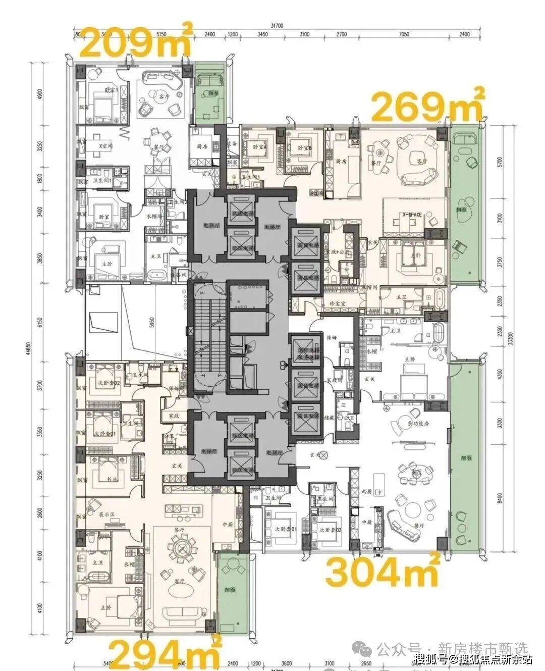 · 1050㎡顶奢大平层:位于顶楼的Penthouse,堪称深圳住宅的巅峰之作,堪比世界级豪宅。