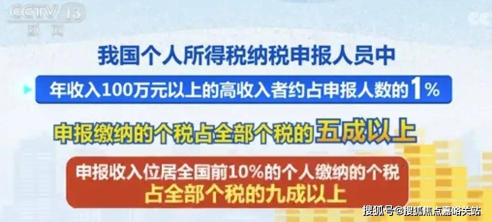 年收入100万元以上的高收入者约占申报人数的1%,但这部分人申报缴纳的个税占全部个税的五成以上,