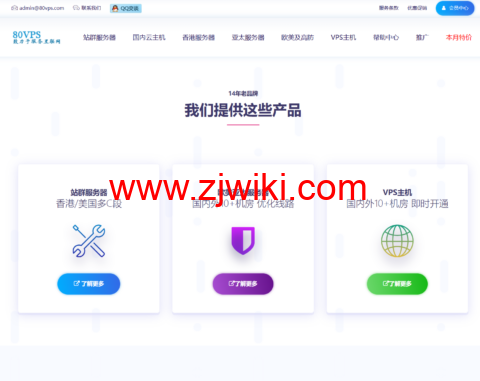 80VPS是成立超过十年的国内主机商,主营虚拟主机、VPS/云服务器和独立服务器租用。服务支持支付宝与微信支付,可安装Linux或Windows操作系统,并提供独立服务器的快速上架服务。