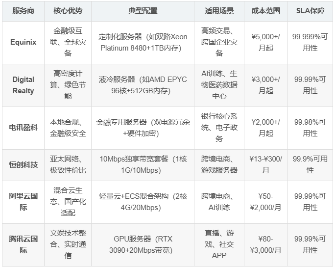 跨国企业灾备:某跨国制造企业利用 Equinix 的全球互联能力,实现香港与新加坡数据中心的实时同步,年停机时间 5 分钟。