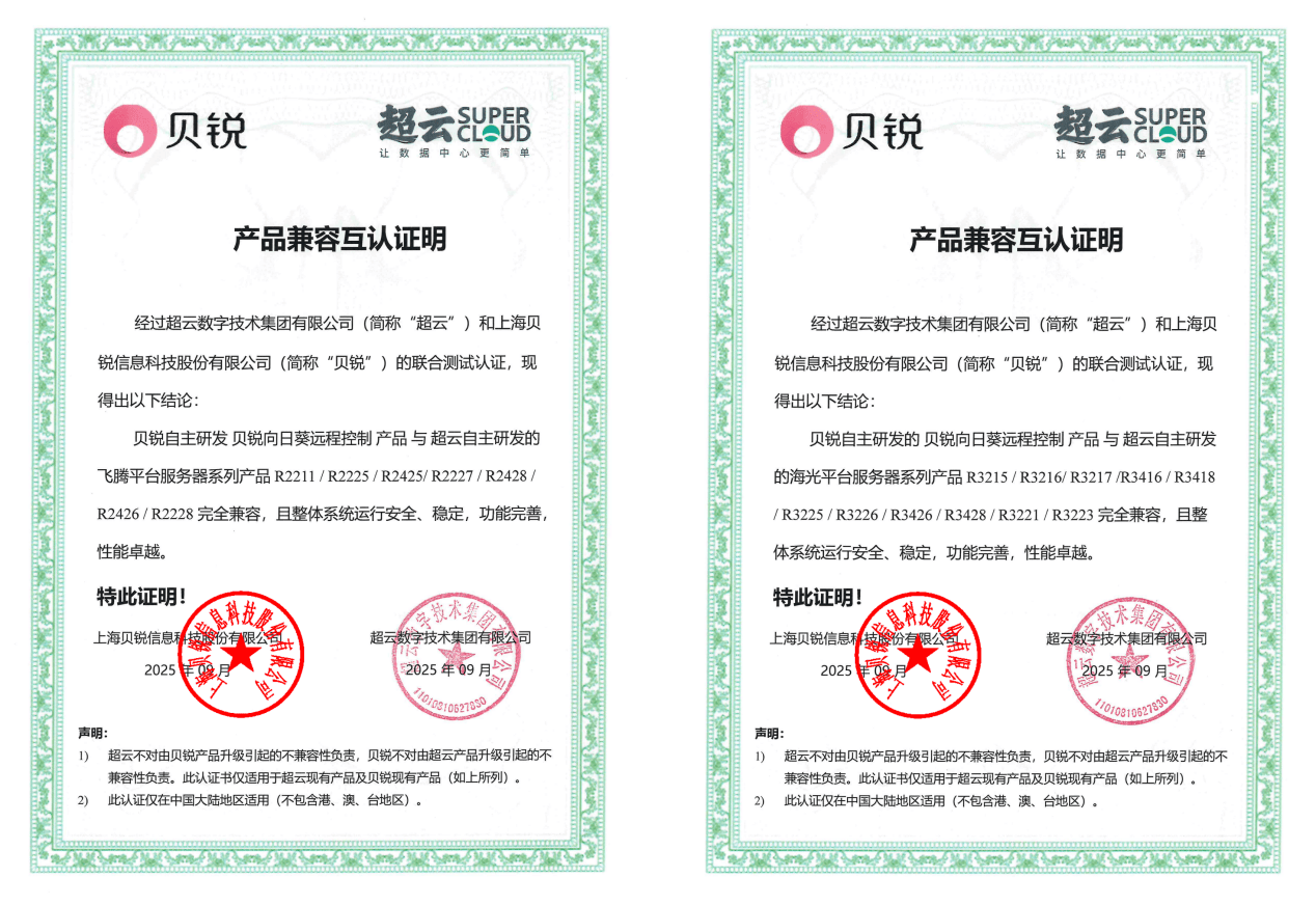 针对这一需求,超云数字技术集团有限公司(简称“超云”)与国产远程控制领军品牌——贝锐向日葵达成产品兼容性互认证。双方联合完成了贝锐向日葵远程控制软件在超云基于飞腾平台和海光平台的服务器系列产品上的兼容性测试。测试结果表明,该方案可实现安全、稳定、高效的远程控制,为信创环境下的智能运维提供了有力支撑。