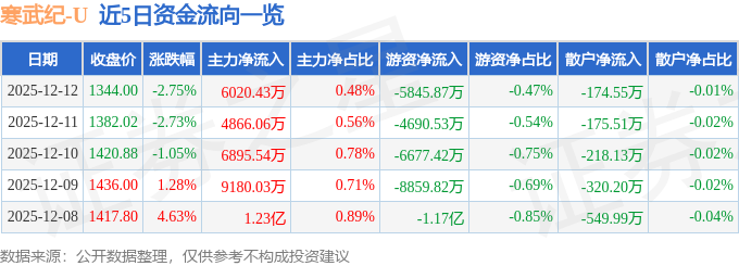 12月12日的资金流向数据方面,主力资金净流入6020.43万元,占总成交额0.48%,游资资金净流出5845.87万元,占总成交额0.47%,散户资金净流出174.55万元,占总成交额0.01%。