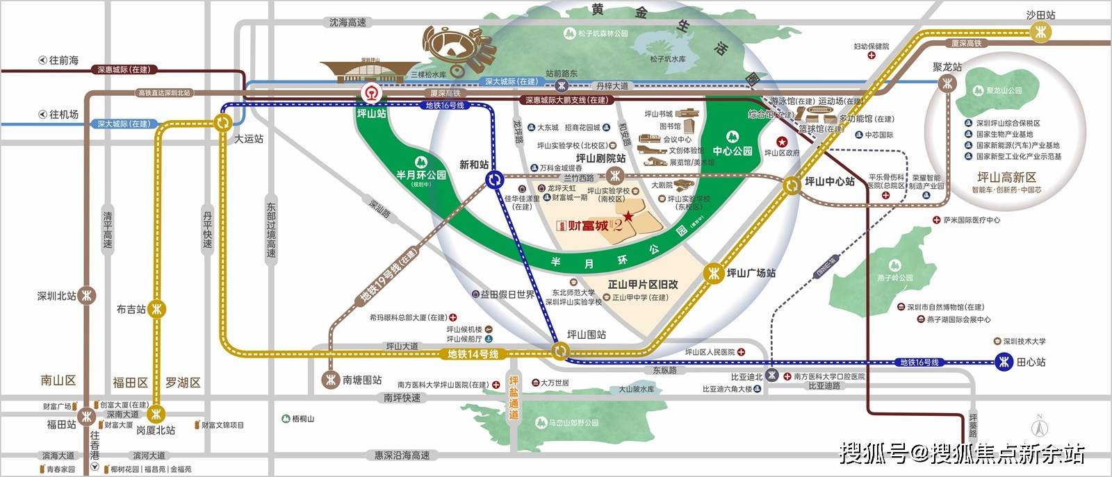 ·高/快速交通路网:坪山大道、南坪快速、盐坪通道、沈海高速、东部过境高速、外环高速极速通达湾区;