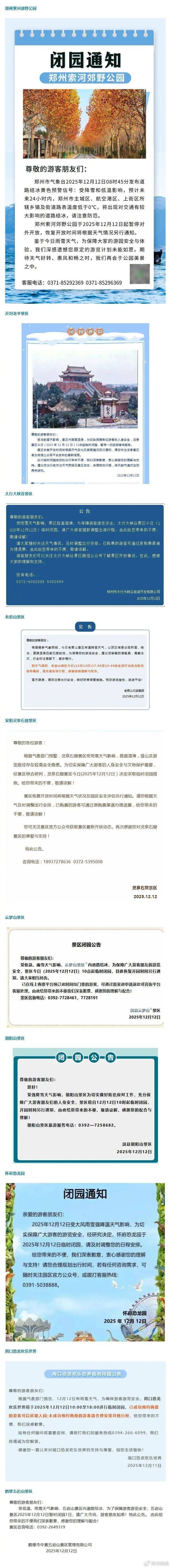 12月12日,河南降雪,多家景区官宣:受降雪天气影响为充分保障广大游客的人身安全,各景区于今日临时闭园↓
