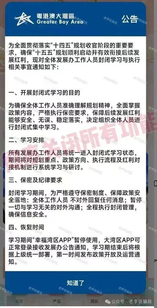今年4月,工信部反诈专班就已经发布反诈预警,证实“粤港澳大湾区”为冒充政府机构的诈骗项目。随后,“粤港澳大湾区”为了掩人耳目,偷偷更名“共建大湾区”继续行骗。