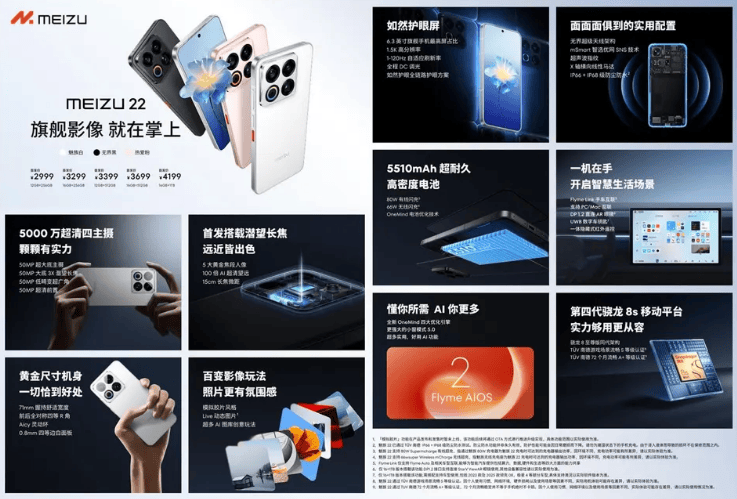 10月30日,魅族旗下热门机型魅族22「月白天青」版本荣耀回归市场,于魅族商城、线上授权店铺以及线下零售门店同步开启销售热潮。