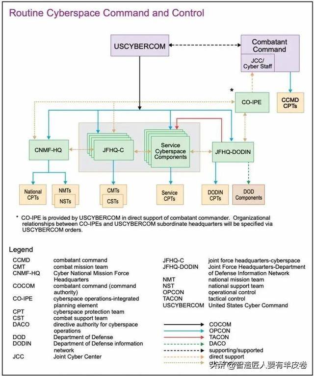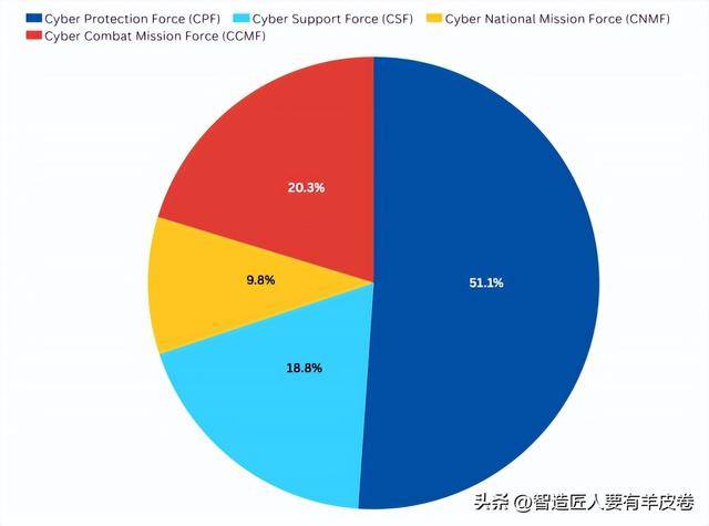 网络作战任务部队(CCMF):共27支队伍,主要任务是开展军事网络作战,并支援各作战司令部(如