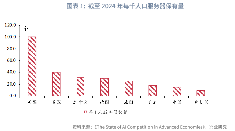 在数据中心方面,根据美联储在《The State of AI Competition in Advanced Economies》一文中披露的数据,截至2024年,美国拥有约4049座数据中心,而我国数据中心数量为379座。换算成人均服务器保有量,美国每千人口服务器保有量达99.9台,而我国每千人仅有14.8台。假设未来我国加大对数据中心的投资,使得我国人均服务器保有量提高至美国当前的水平,那么未来我国需增加的服务器数量约为1.2亿台。从数据中心的投资金额来看,根据新闻报道披露,阿里巴巴云计算数据中心[1]、中国工商银行西安数据中心[2]、南方能源大数据中心[3]、乌兰察布数据中心[4]的投资金额分别为100亿、147.5亿、14.5亿、732.1亿元,建成后将分别容纳20万、50万、10万、419.1万台服务器。将以上数据中心项目每个服务器所需投资金额取平均值,每万台服务器的投资金额约为2.8亿元。那么未来我国扩大数据中心投资新建1.2亿台服务器所需的投资金额为3.4万亿元。